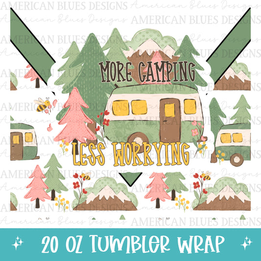 More Camping Less Worrying 20oz tumbler wrap