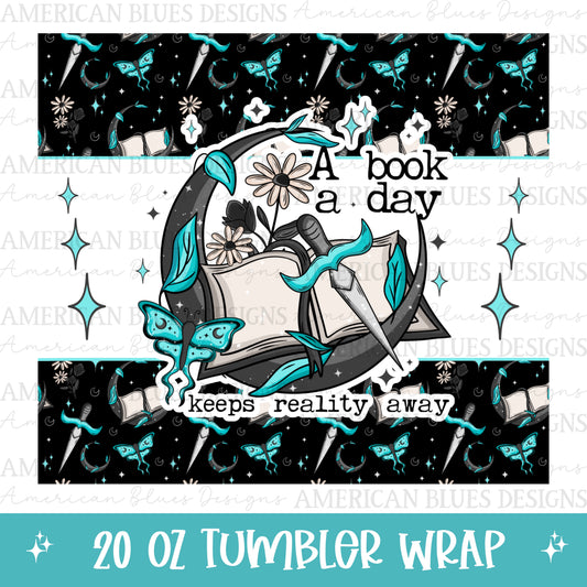 A book a day keeps reality away 20oz tumbler wrap