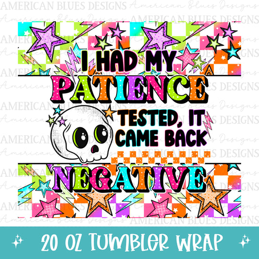 I had my patience tested, it came back negative 20oz tumbler wrap