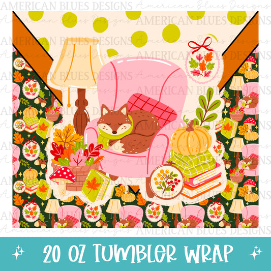 Cozy Fall Bookish Fox 20oz tumbler wrap