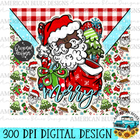 Merry Santa dark skin tone- 20 ounce tumbler wrap