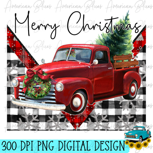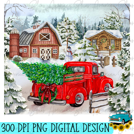 Christmas farmhouse with old red truck TUMBLER WRAP