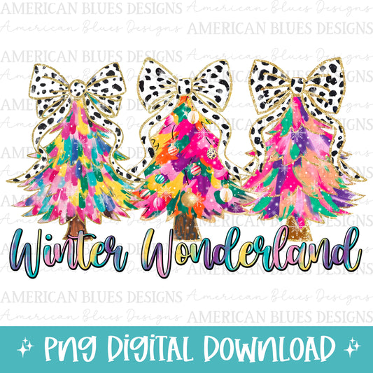 Winter Wonderland Bright Tie Dye Coquette Bows and trees