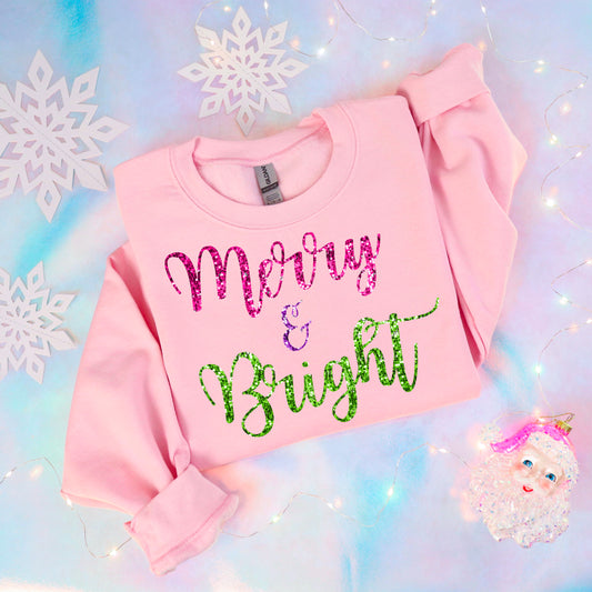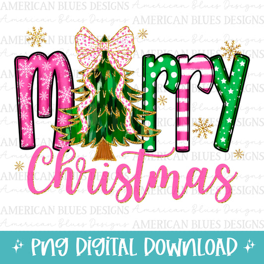 Merry Christmas- Pink, Green & Glitter