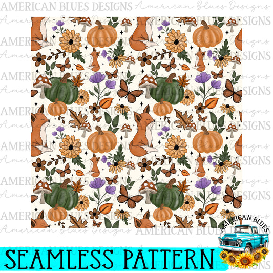 Autumn Fox seamless pattern