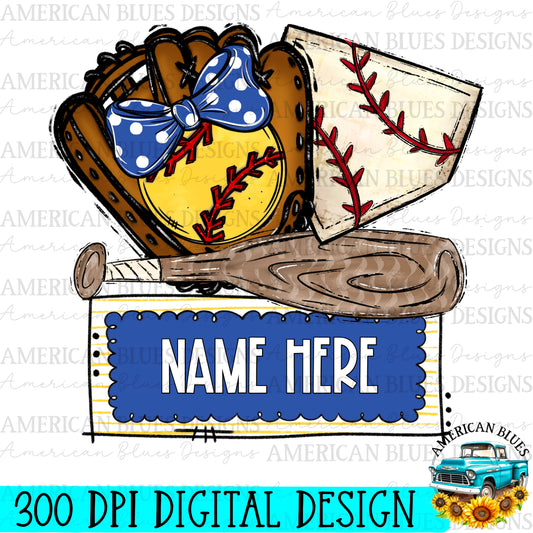 Softball name plate with bow