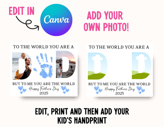 Editable Father’s Day Handprint Printable – “To the World You Are a Dad” | Custom Photo & Handprint Art | Instant Download | Canva Template