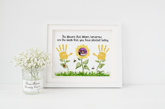 “The flowers that bloom tomorrow, are the seeds that you have planted today" Handprint Photo Craft | Editable Canva Template