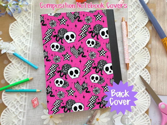 Neon Pink Skull & Snakes Composition Notebook Cover