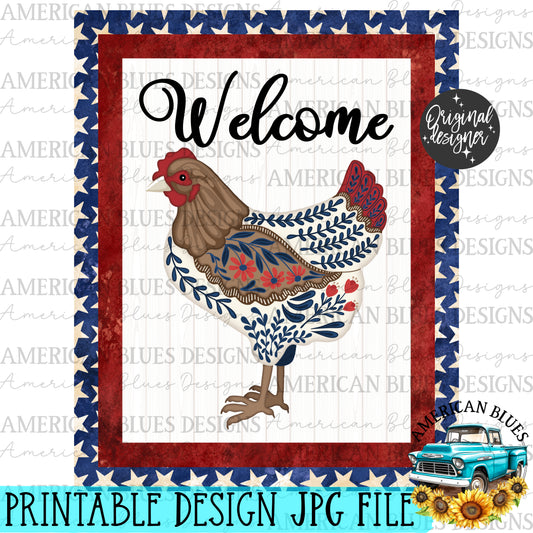 Welcome- Vintage Patriotic Americana chicken