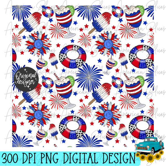 Red, White & Cool 4th of July seamless pattern