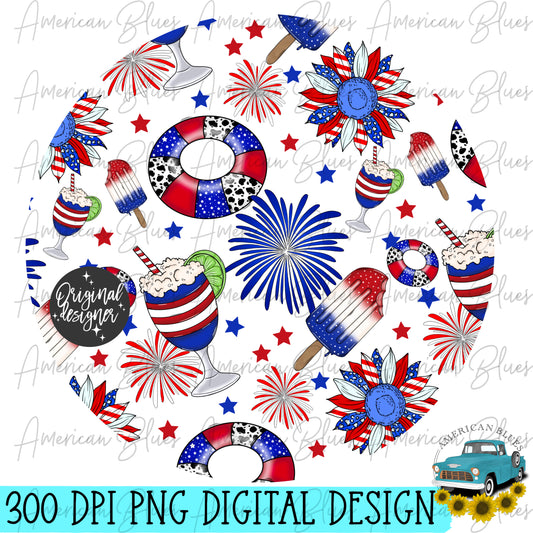 4th of July tubes, floats and flowers seamless pattern